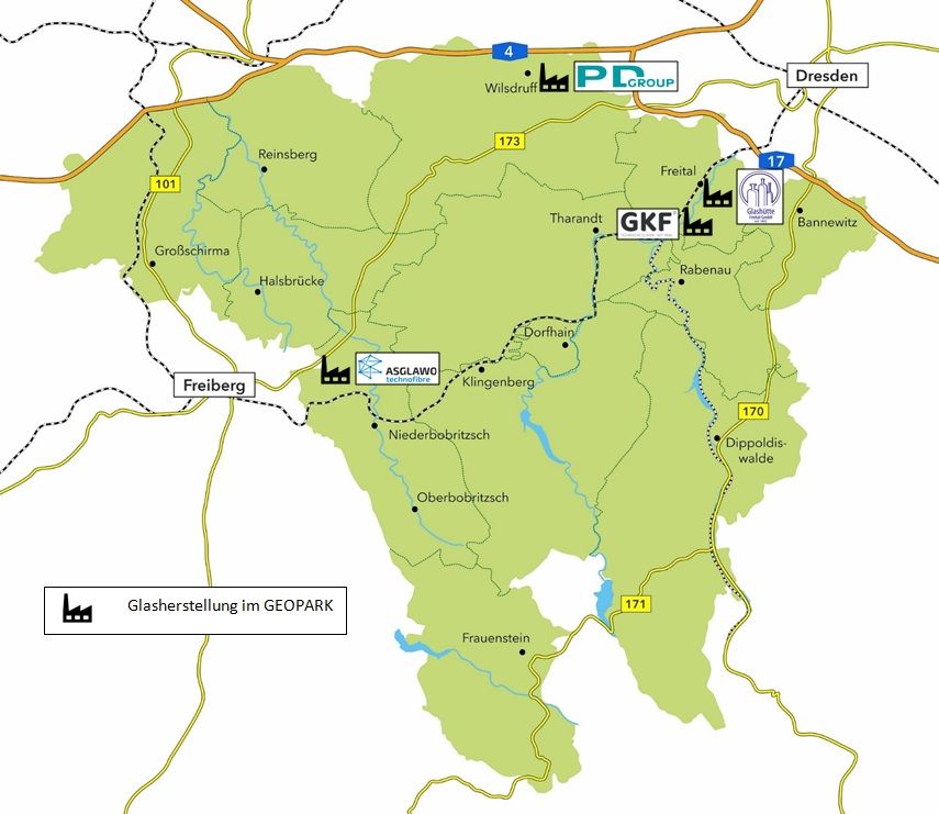 Die Glasproduktion in Sachsen hat ihre Wurzeln im Mittelalter ab dem 13. Jahrhundert, als die ersten Waldglashütten aufgrund der reichlich vorhandenen Rohstoffe wie Holz und Quarzsand in den malerischen Wäldern und Tälern des Geoparks gegründet wurden. Diese Tradition hat sich in Teilen bis heute erhalten und weiterentwickelt, wobei sich heute traditionelle Handwerkskunst als auch moderne Technologien vereinen.